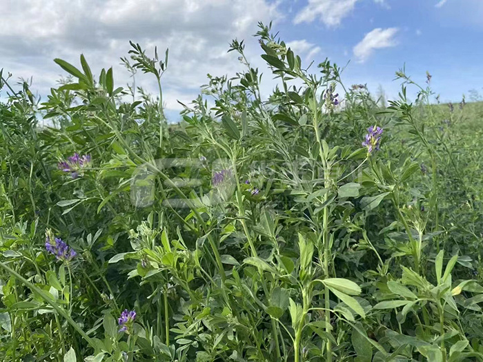 “勁能”5010紫花苜蓿葉片大,葉量豐富,莖稈纖細(xì)柔軟,粗蛋白含量達(dá)23%,相對飼喂價(jià)值157,各類家禽喜食。